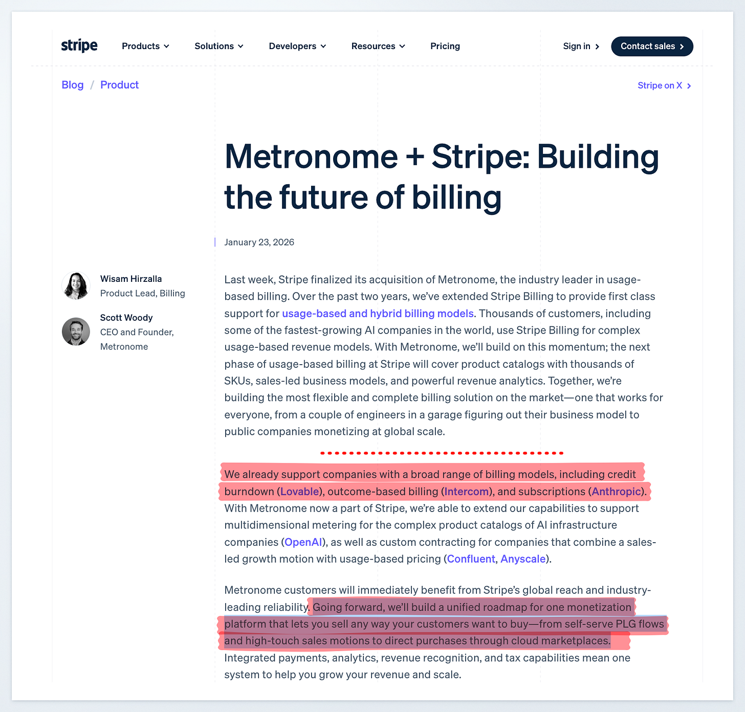 This is Stripe telling the entire billing industry: “Whatever you think your differentiator is, we already have it. With Anthropic, Intercom, and Lovable as receipts”.